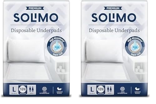 Amazon Brand - Solimo Premium Underpads Large (L) Size, 10 Count| 90 X 60 Cm|Unisex, High Absorbency, Super Soft (Pack Of 2) is available on Amazon at best discounted online price. Original of this product is ₹ 1200.0. You can buy this product at discounted rate ₹ 236.
